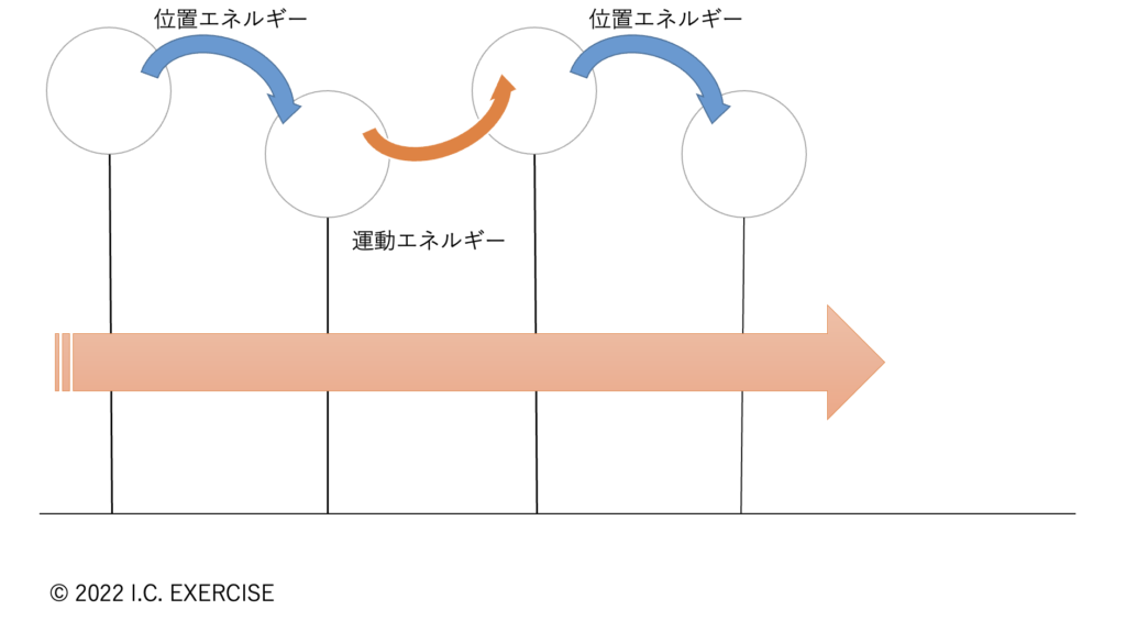 簡単に説明すると位置エネルギーと運動エネルギーを交互に使用する戦略を取ることによって非常にエネルギー効率よく歩行を行うことができています。
