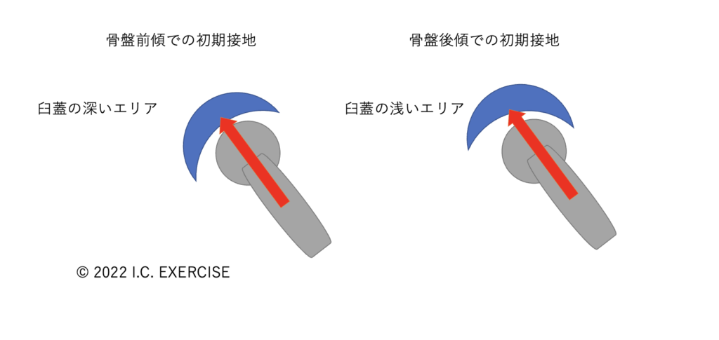 しかし、骨盤が後傾位の姿勢で骨頭からの荷重を受けてしまうと、関節の剛性を高めることができずに、不安定性が出てきてしまいます。また、臼蓋にも負荷がかかることで障害になってしまうことも考えられます。