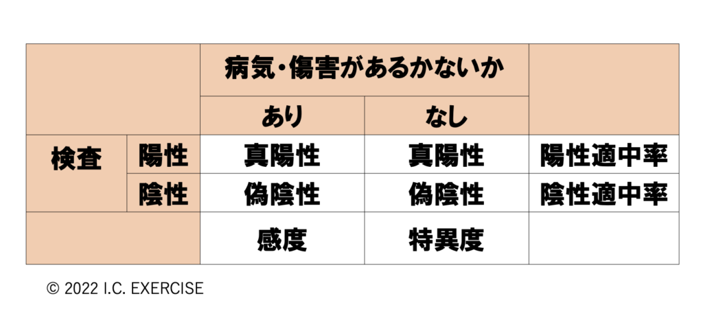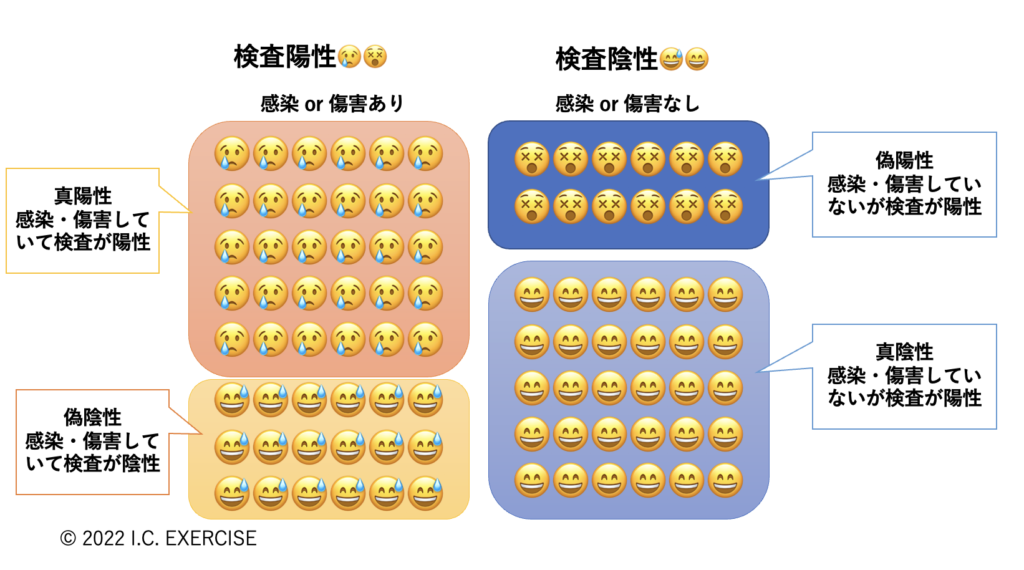 ①感度(Sensitivity): 真陽性の人数/感染・傷害ありの人数