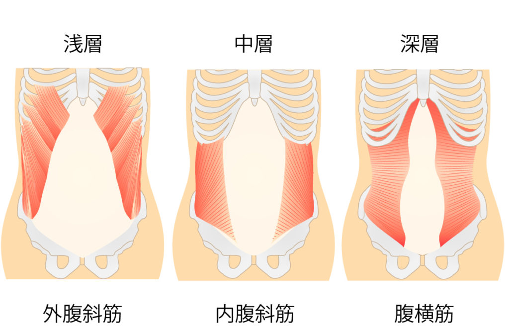 腹筋群(腹横筋・内外腹斜筋)は体幹部の安定性に必要不可欠な筋群であり、
