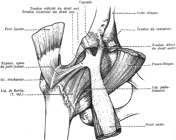 +@の補強として、関節包前方の一部は腸骨周囲筋・小殿筋・大腿直筋の反回頭があります。