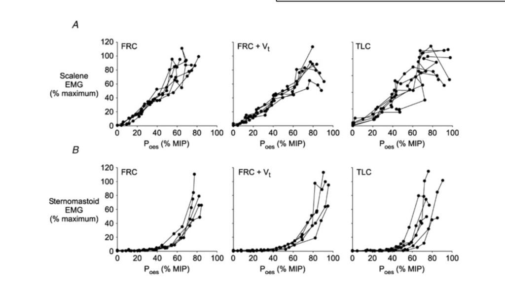 Hudson AL, Gandevia SC, Butler JE. The effect of lung volume on the co-ordinated recruitment of scalene and sternomastoid muscles in humans. J Physiol. 2007 Oct 1;584(Pt 1):261-70. doi: 10.1113/jphysiol.2007.137240. Epub 2007 Aug 9. PMID: 17690147; PMCID: PMC2277075.