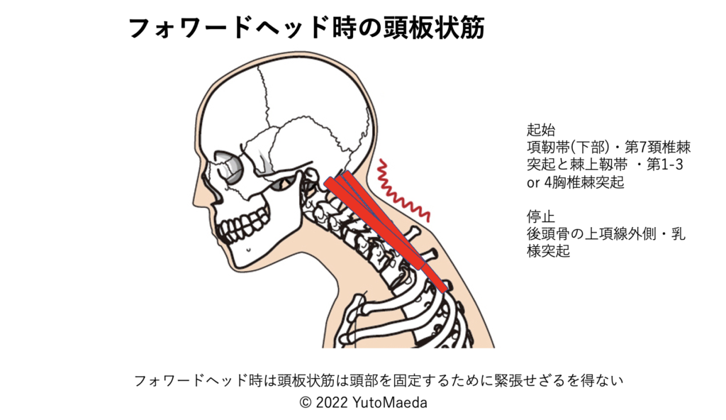 この文献では、フォワードヘッドの人では通常の人よりも頸板状筋の筋長があったとされています。